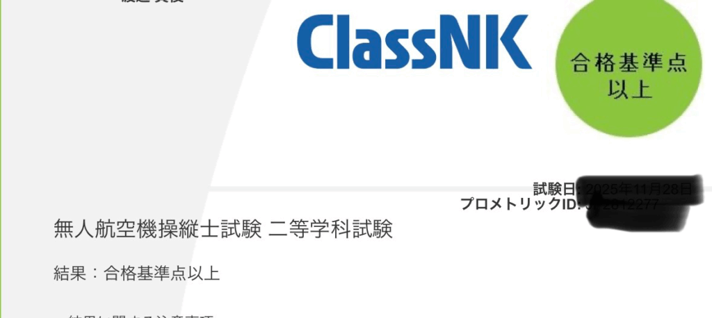 その流れで「合格です」といただきまして、晴れて実地試験も合格となりました。多分80点後半くらいになったんじゃないかと思います。と、この内容でDIPSにて申請を行えば資格証が発行されると思うのですが、私の場合は目視外飛行、夜間飛行の限定解除も行いますので、基本が合格したのちに講習と試験の日取りを決めました。